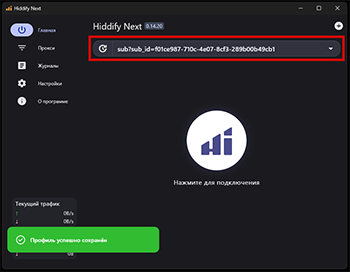 После успешного добавления подписки появится соответствующее уведомление, а также сам ключ или подписка