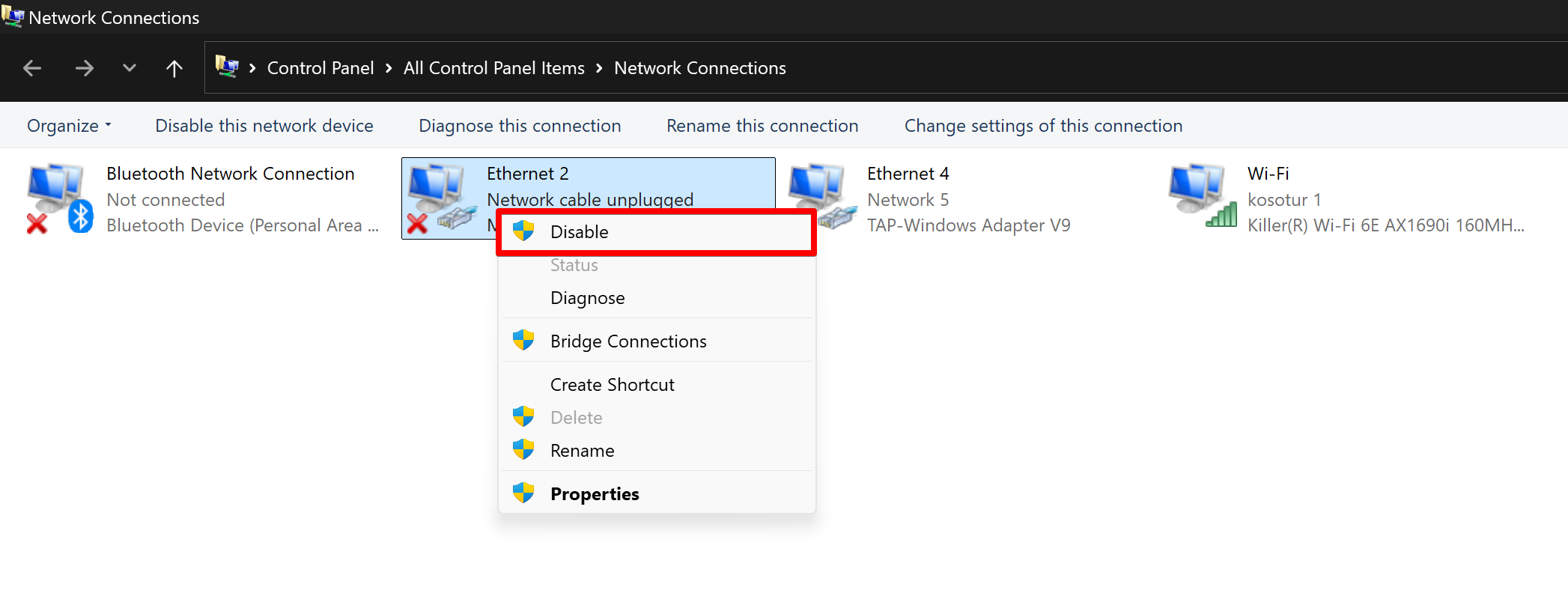 тогда, необходимо открыть сетевые подключения и проверить наличие лишних сетевых адаптеров, которые могут быть отмечены как неопознанные устройства