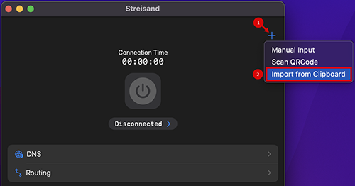 - В правом верхнем углу нажать на кнопку с плюсом и выбрать “Import from Clipboard” / “Добавить из буфера”