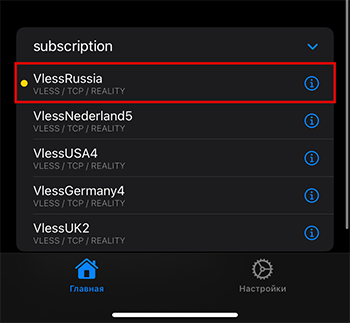 - Для подключения/отключения к VPN нажать на кнопку в центре окна