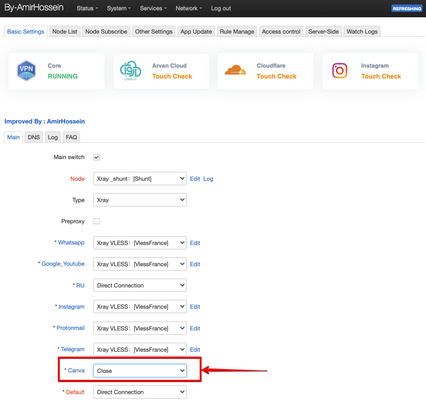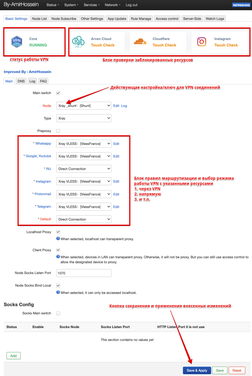 Блоки правил маршрутизации позволяют точечно маршрутизировать добавленные сервисы (подробности о настройке далее)
